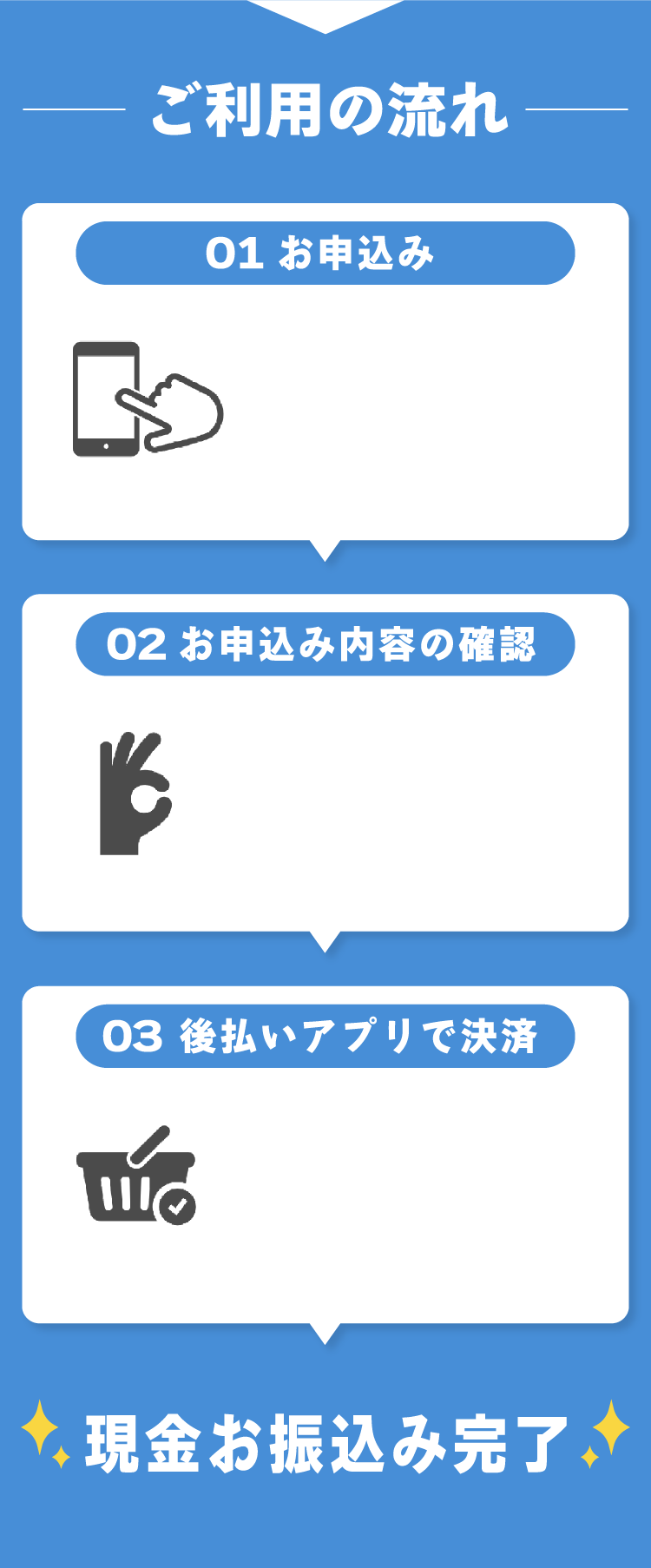 弊社からのご案内に沿って、後払いアプリで決済をお願いします。